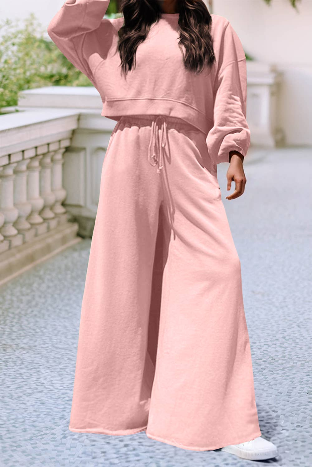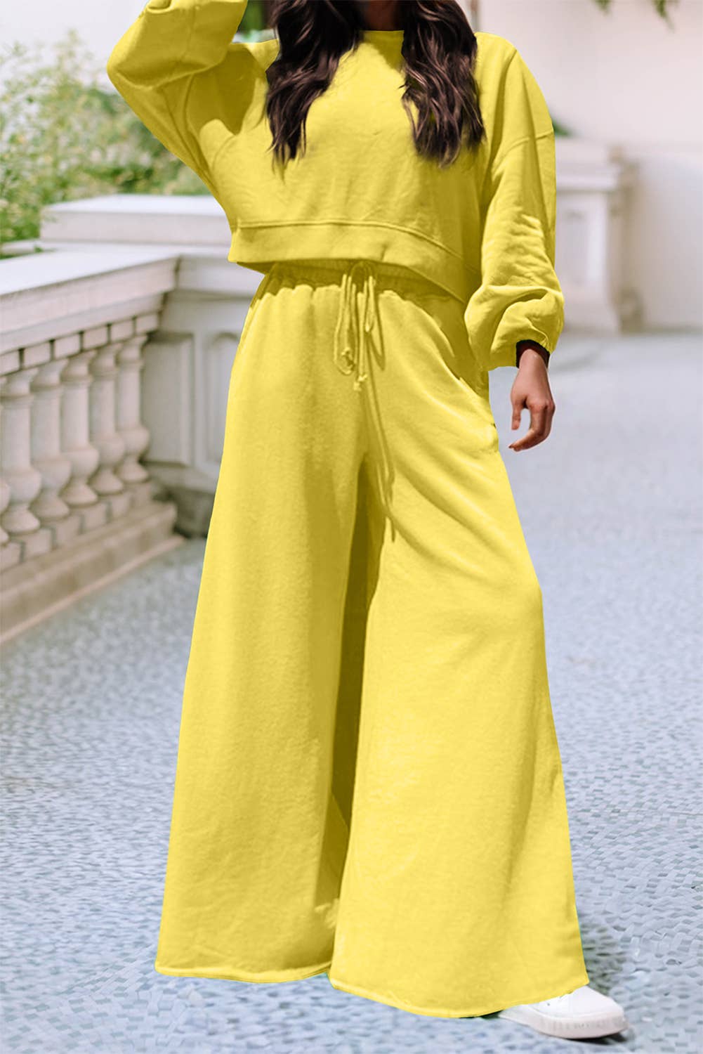 Material 65%Polyester+35%Cotton Style Casual Pattern Abstract Occasion Daily Season Pre-Fall 🌟 A must-have, this season’s trending relaxed pant set. 👚 Includes cropped pullover and wide leg pants. 🧵 Soft, premium fabric in solid color.